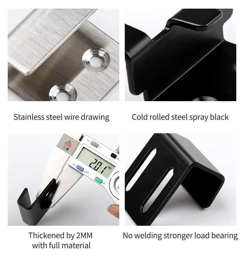 قلاب براکت کاشی فولادی ضد زنگ Haozhifeng® یک لوازم جانبی نصب همه کاره و مستحکم است که طراحی شده است. پروفیل آهنی زاویهای L شکل آن به آن اجازه میدهد تا به خوبی در شکافهای باریک بین کاشیها، کابینتها یا مبلمان قرار گیرد و در عین حال تقریباً نامرئی باقی بماند.